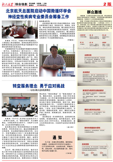 8月28日北京航天总医院召开了一次别开生面的、以“感动式服务”为主题的朝会。全体院领导及全体中干、全院护士长参加,会议由母林华副院长主持。