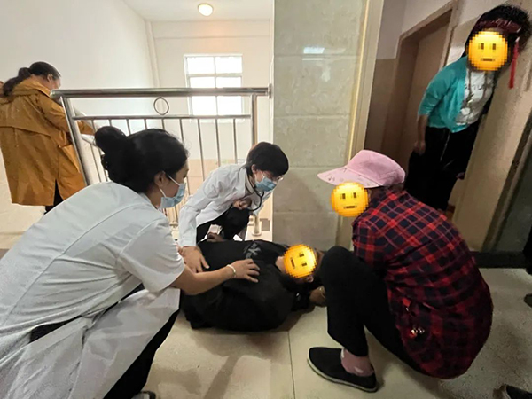 急诊科叶丹主任医师同时也是神经科专家,在义诊过程中遇到患者癫痫大发作,叶主任立即进行了现场施救,徒手为患者清理口腔分泌物、保持气道畅通,最终患者安全转运至当地医院继续治疗,叶主任在此次突发事件中展现出了一名急诊科以及神经科医生的精准判断、迅速反应、处理果断的高超素质。