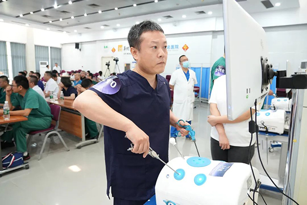 在激烈紧张的决赛中,各参赛选手从容淡定,冷静发挥,充分展现了扎实的腔镜手术技能和精湛的现场应变能力。