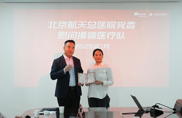 为深入贯彻落实国家医疗援疆决策部署,北京航天总医院自2024年8月正式启动“组团式”医疗援疆工作以来,持续将首都优质医疗资源精准输送至新疆生产建设兵团第十师北屯市。2026年1月5日,正值小寒节气,北京航天总医院党委副书记陈志刚带领医院专家团队,远赴新疆北屯市,开展2026年度援疆工作中期评估、慰问等系列工作。一场跨越千里的健康守护行动,正如星火燎原,在西北边陲持续升温,照亮边疆群众的健康之路。