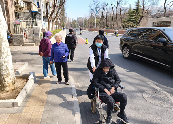 因现场与我院距离极近,若开救护车前往会绕不少远路,而穿小路能大幅节省时间,于是三名医护人员没有片刻犹豫,一路飞奔赶到现场时。当他们抵达现场,患者程某正双膝跪地,全身持续抽搐,冷汗早已浸透衣衫。幸运的是,现场已有两名保安和两位热心群众守护在患者身边,维持秩序,为救援争取了宝贵的时间和空间。